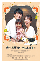 年末にかけてのご結婚や出産、引越しなどの場合は、近況報告を兼ねて寒中見舞いでお知らせしましょう。写真フレームタイプのデザインで写真を添えることも可能です。